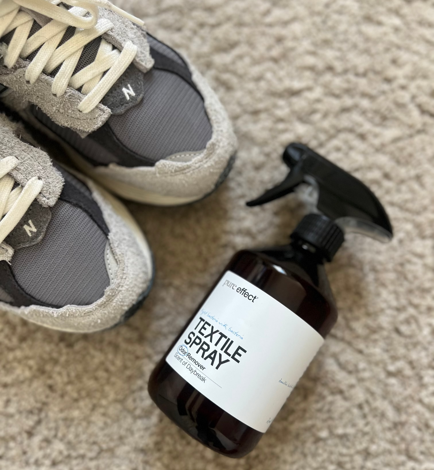 Pure Effect Textile Spray tar bort lukt och gör kläder och prylar fräscha utan att man behöver tvätta dem. Funkar lika bra på linneskjortan och ullkoftan som träningskläderna och sportprylarna. Ett riktigt lifehack.