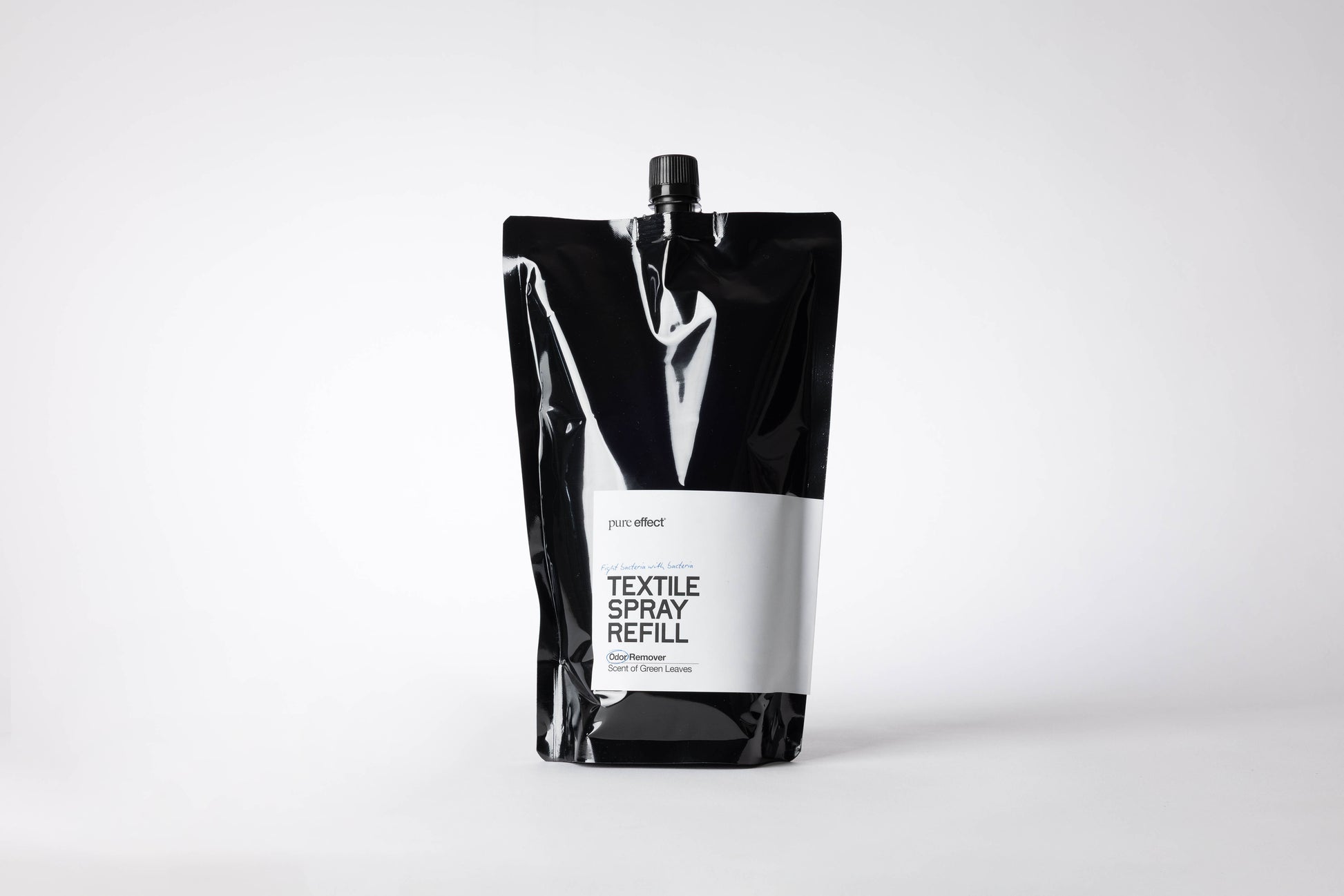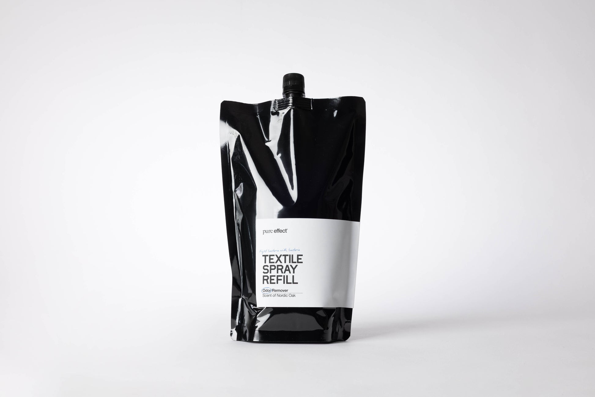 The 1000 ml refill pouch is perfect for topping up your small or large Textile Spray — which you use on clothes, shoes, sports gear, furniture, rugs, and other larger textile surfaces. Also available as a handy travel spray (75 ml) and a larger spray bottle (500 ml).